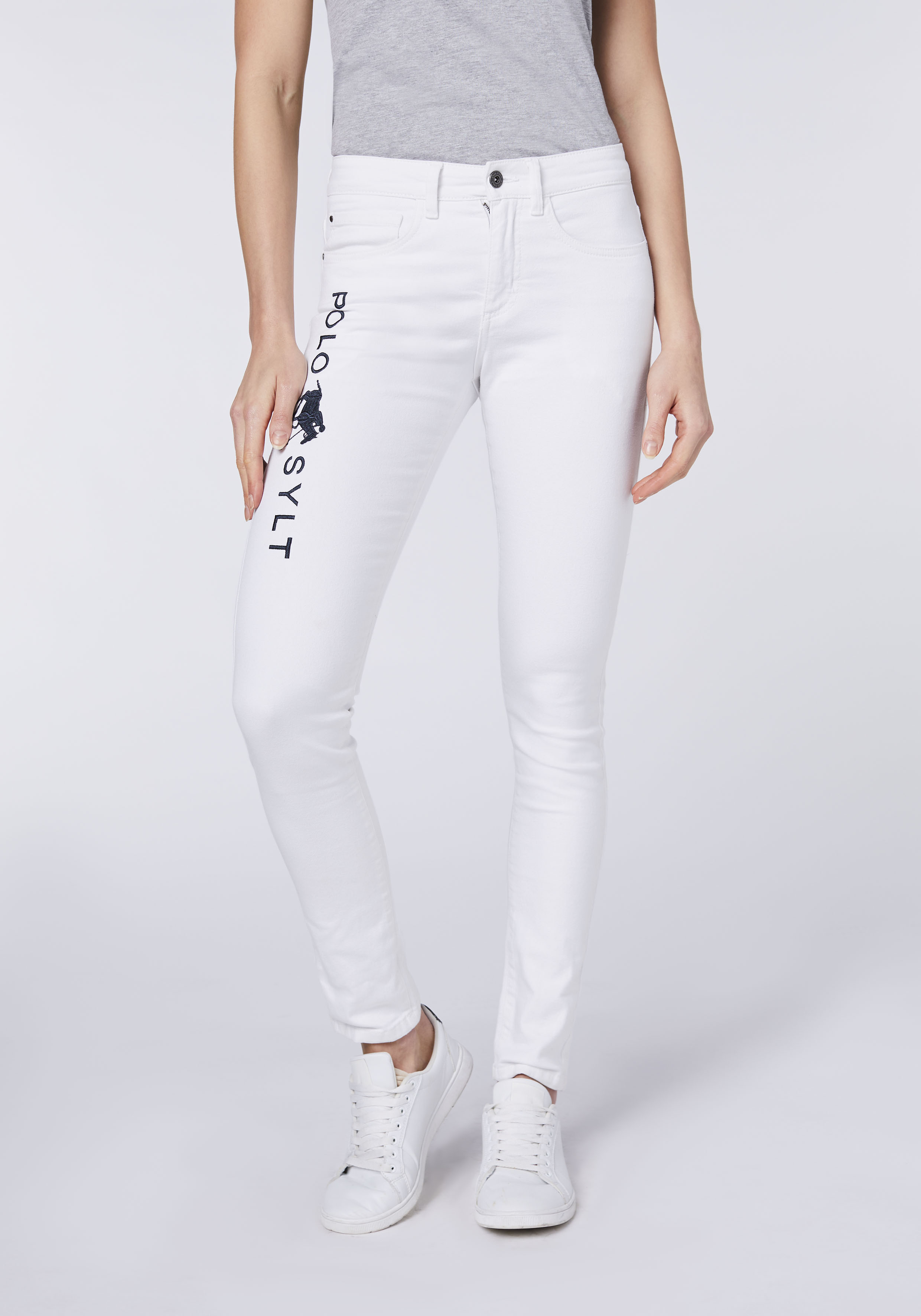 Der lässige Schnitt der Denim umfließt sanft die Oberschenkel. Neben dem gerade geschnittenen Beinverlauf sorgt die figurumspielende Passform der Pants für jede Menge Tragespaß. Der Bund der Damenhose ist für einen super Sitz in der Taille verantwortlich. Alles in allem eine perfekte 5-Pocket-Jeans für Frauen, die es trageangenehm und komfortabel mögen. Modeaffine Polosport-Liebhaberinnen können auf die Jeans von POLO SYLT auf keinen Fall verzichten.