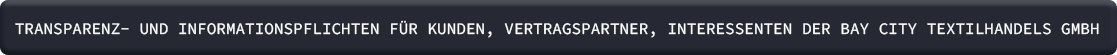 TRANSPARENZ- UND INFORMATIONSPFLICHTEN FÜR KUNDEN, VERTRAGSPARTNER, INTERESSENTEN DER BAY CITY TEXTILHANDELS GMBH