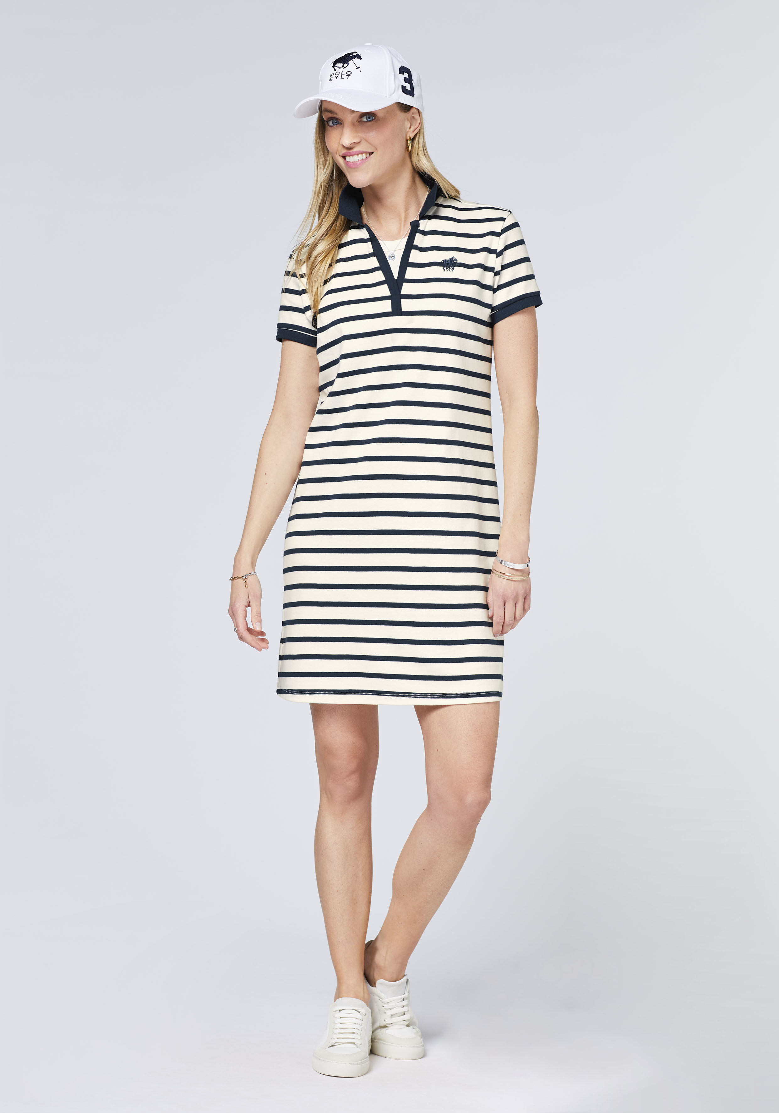 POLO SYLT Damen-Streifenkleid mit Logo-Motiv vorne