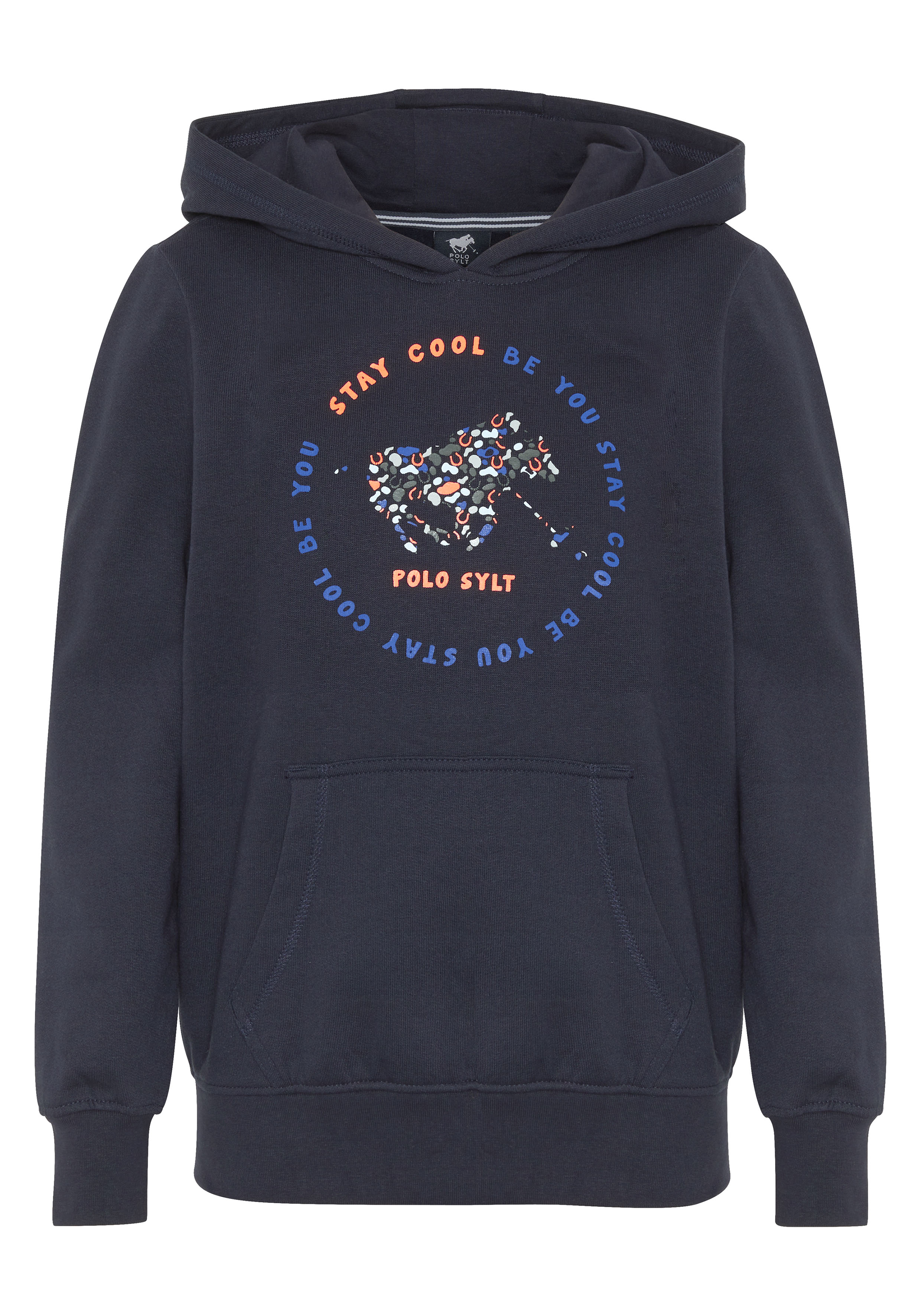 Coole Message trifft bei dem Unisex-Kids-Kapuzenpullover auf POLO SYLT Logo-Symbol in bunter Optik. Der Labelprint wird von „STAY COOL BE YOU“-Schriftzügen gerahmt. Dank der Baumwollmischung mit soft angerauter Innenseite und Enzyme-Wash-Finish erweist sich der POLO SYLT Hoodie als super bequem. Ein neuer Lieblings-Style, der viel mehr ist als nur ein Basic.