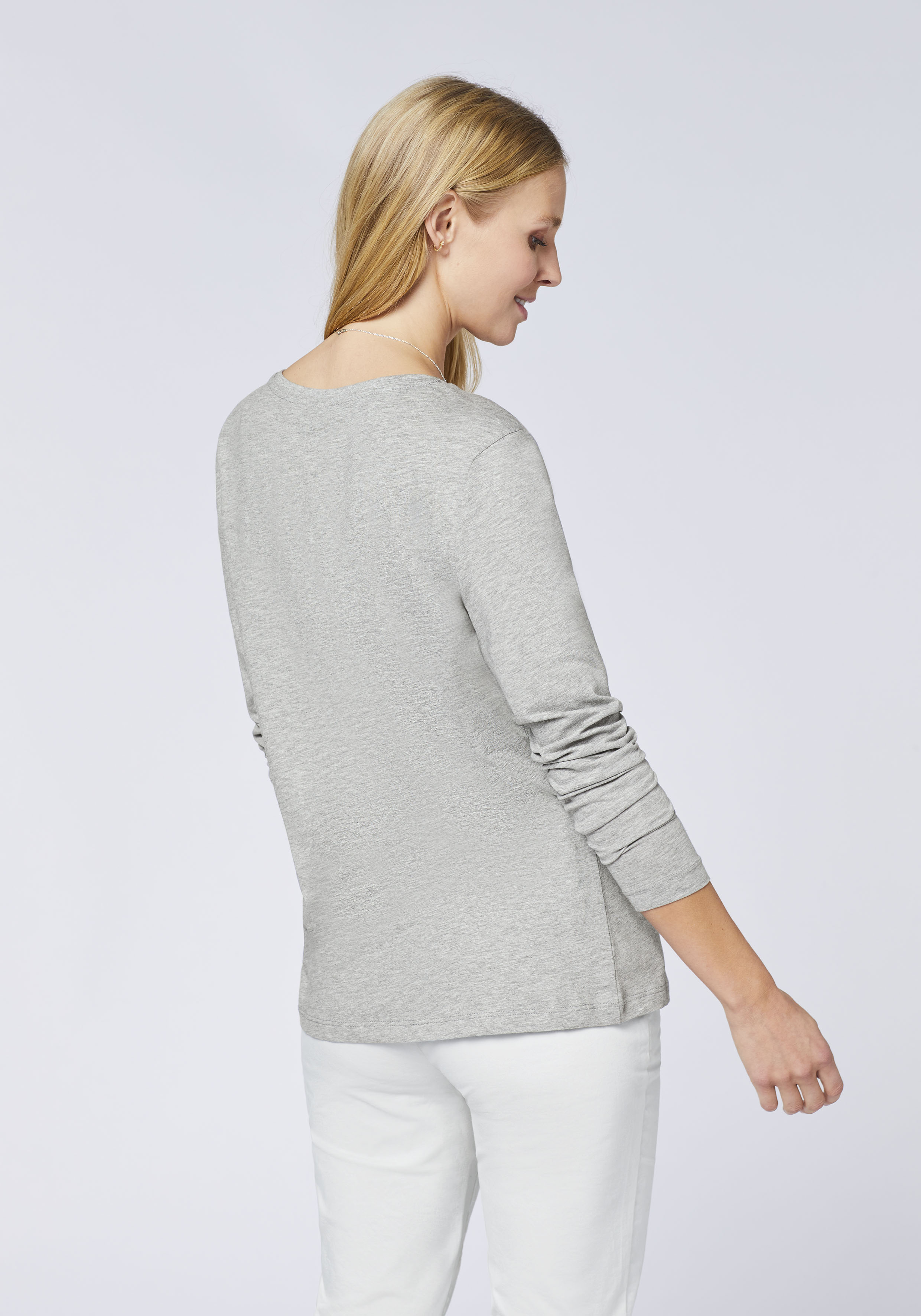 Du liebst Basics mit dem gewissen Etwas? Dann ist das Damen-Langarmshirt von POLO SYLT wie für dich geschaffen. Während es sich in schlichter V-Neck-Silhouette zeigt, fungiert ein Label-Schriftzug an der Vorderseite als dezenter Blickfang. Für herrliche Wohlfühlmomente sorgen der legere Schnitt mit Taillierung und die weiche Baumwollmischung. Et voilà: dein neues Lieblings-Longsleeve von POLO SYLT.