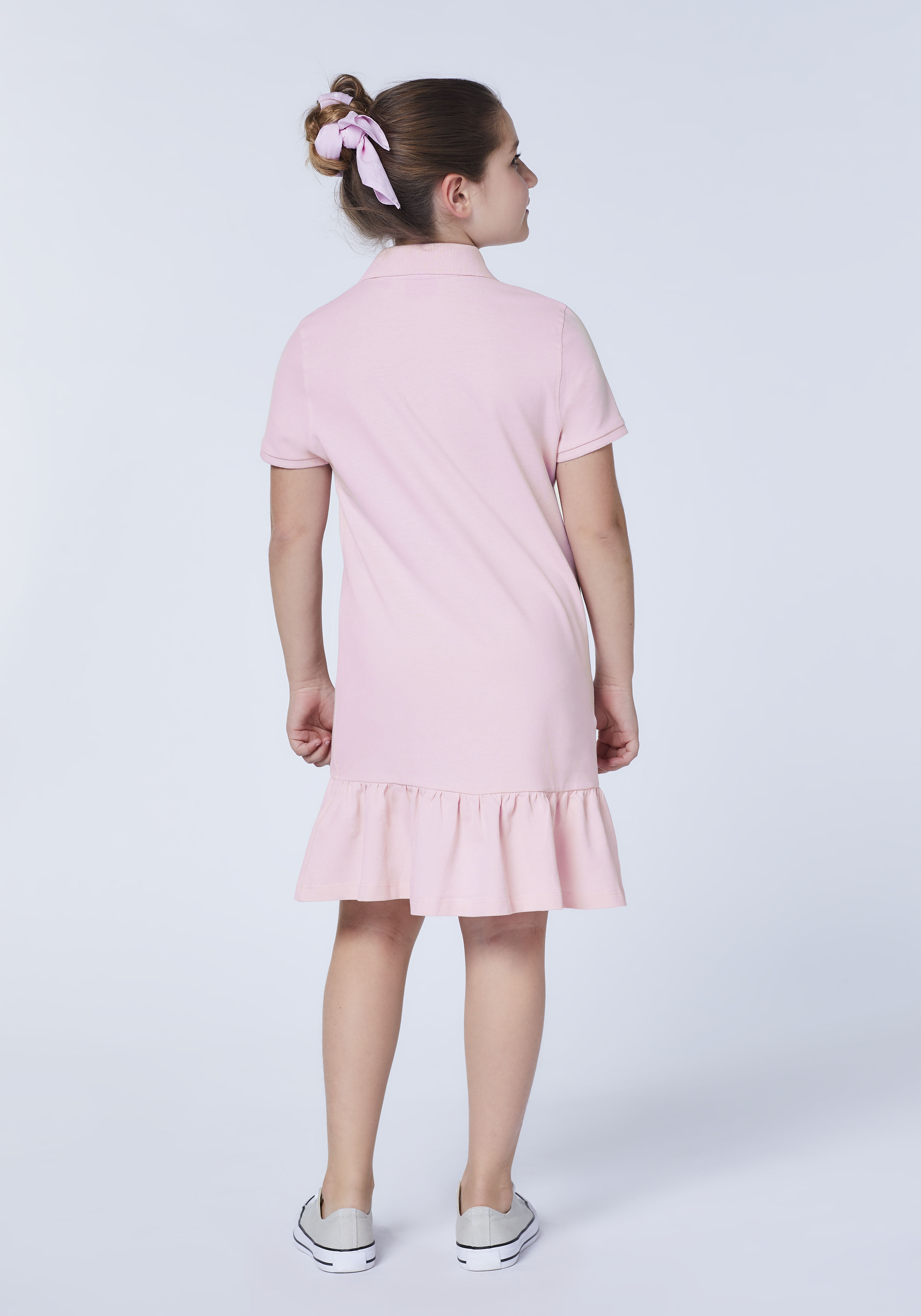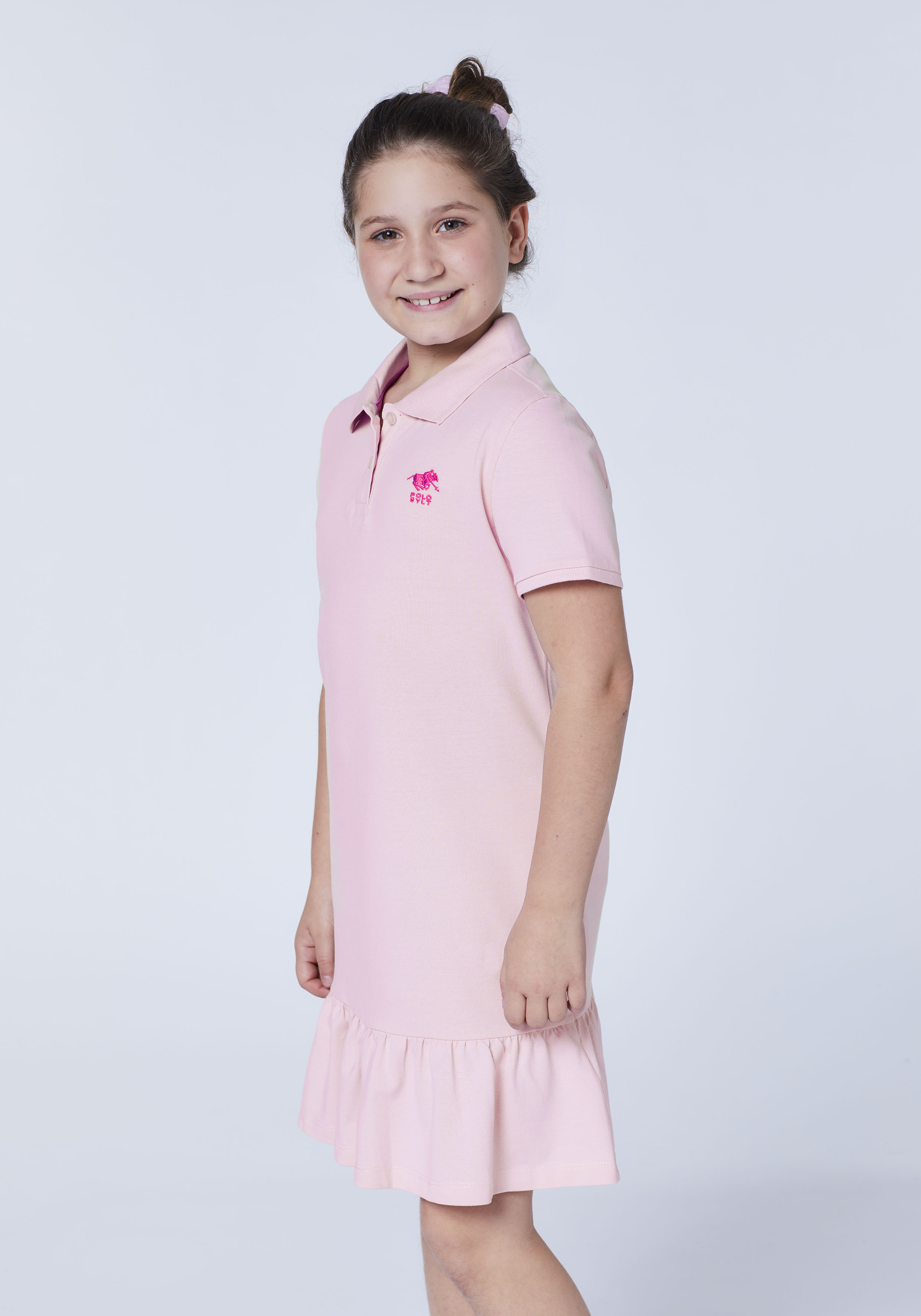 Mädchen-Polokleid aus Baumwollpiqué mit Volantsaum