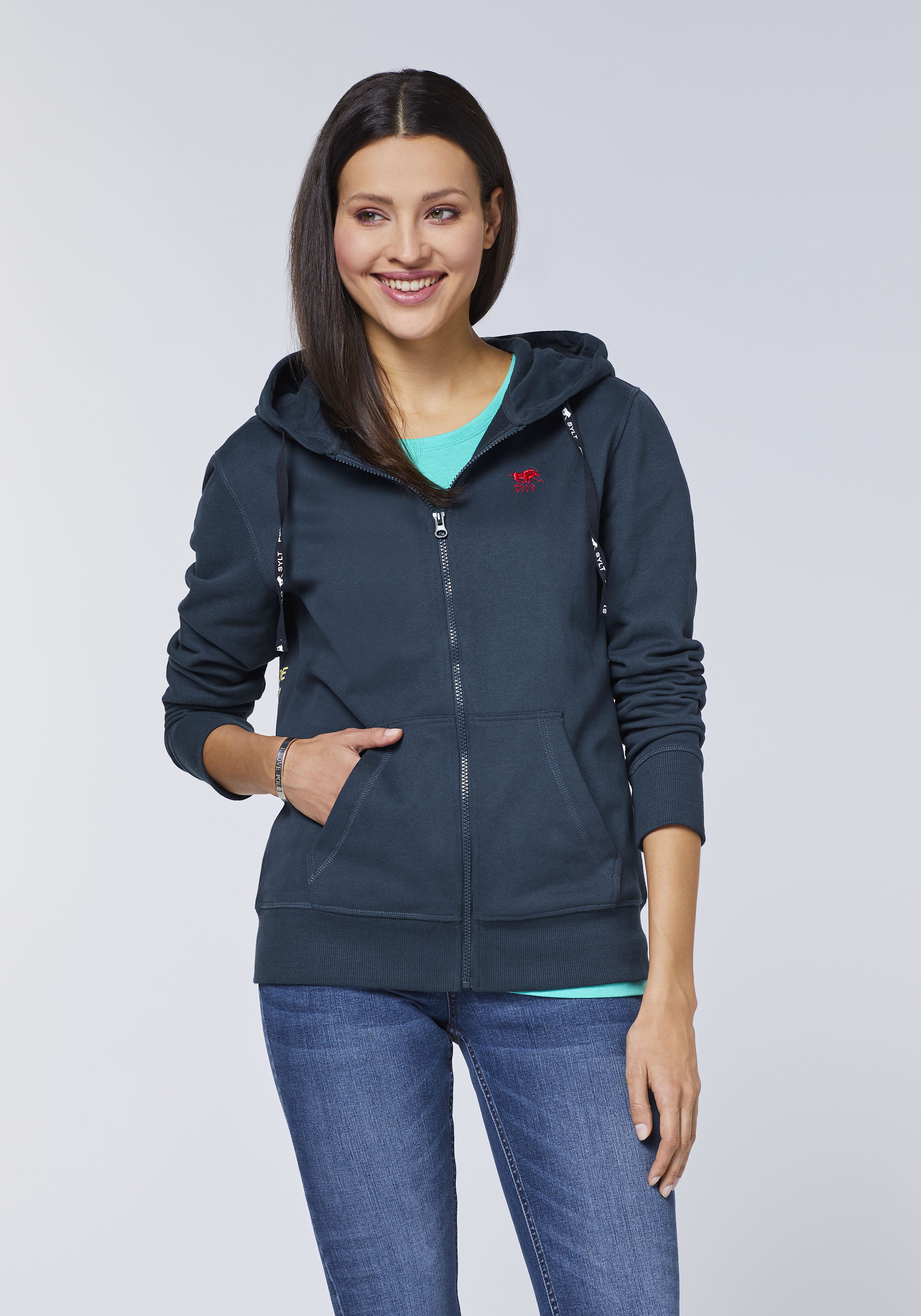 Bei der bedruckten POLO SYLT Damen-Sweatjacke mit Kapuze trifft Komfort auf charakteristischen Polosport-Style. Dafür sorgen der leicht taillierte Schnitt, die weiche Baumwolle und die polo-typischen, aufgedruckten Wörter an der Rückseite. Die Kapuzenjacke von POLO SYLT erweist sich als perfekter Freizeit-Begleiter für alle, die wissen, dass Polo mehr als nur ein Sport ist.
