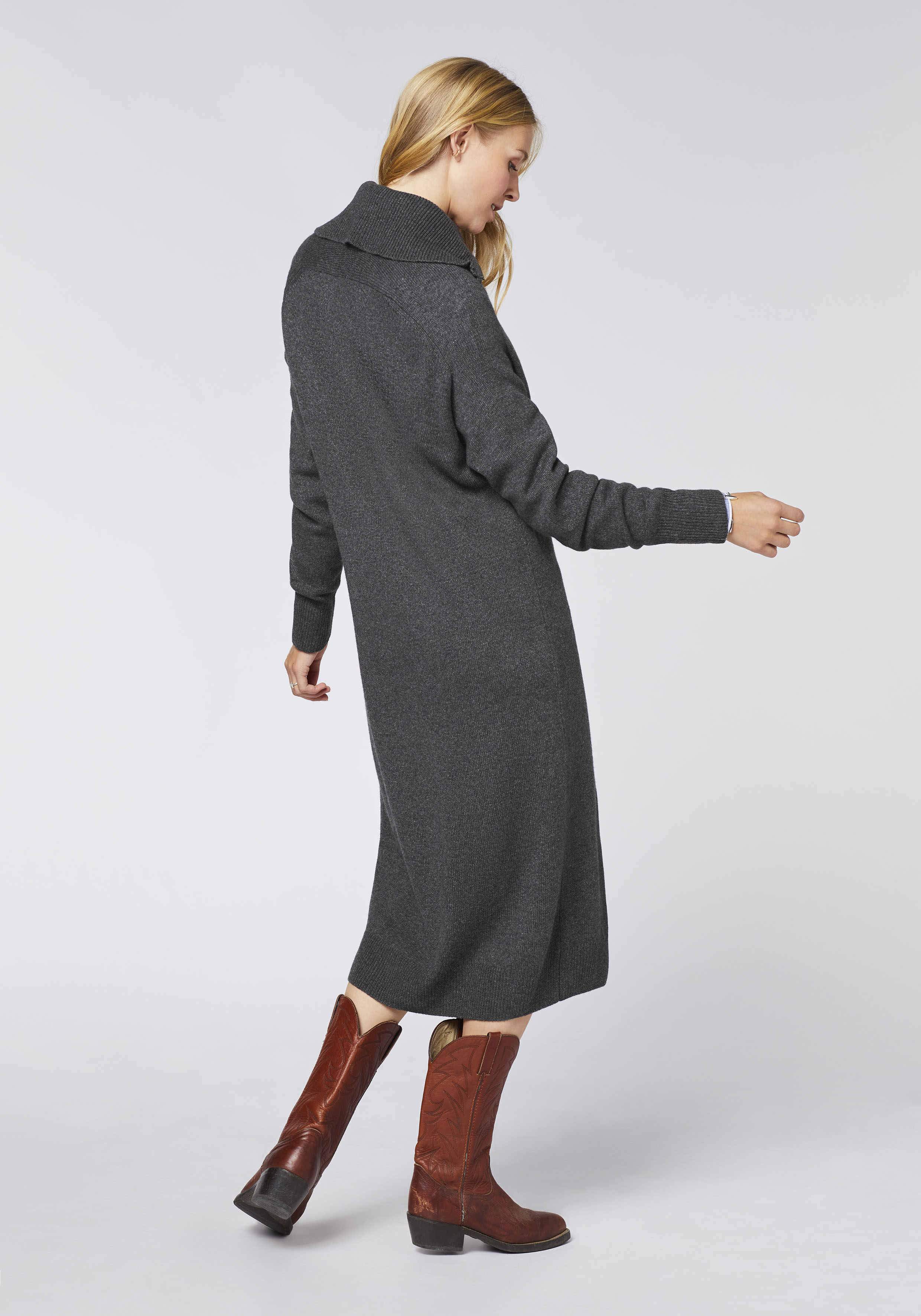 Très chic: Das figurschmeichelnd geschnittene Damen-Kleid von POLO SYLT ist aus einer soften Woll-Melange gefertigt. Komfortabler Strick trifft auf einen hohen Kragen mit Zipper und lässig gerippte Bündchen. Ein moderner Stilmix, der sich vor allem an kühlen Tagen bewährt. Tipps: Style das POLO SYLT Strickkleid entweder leger-elegant mit deinen Lieblings-Stiefeln oder als sportiven Kontrast zu Sneakern.